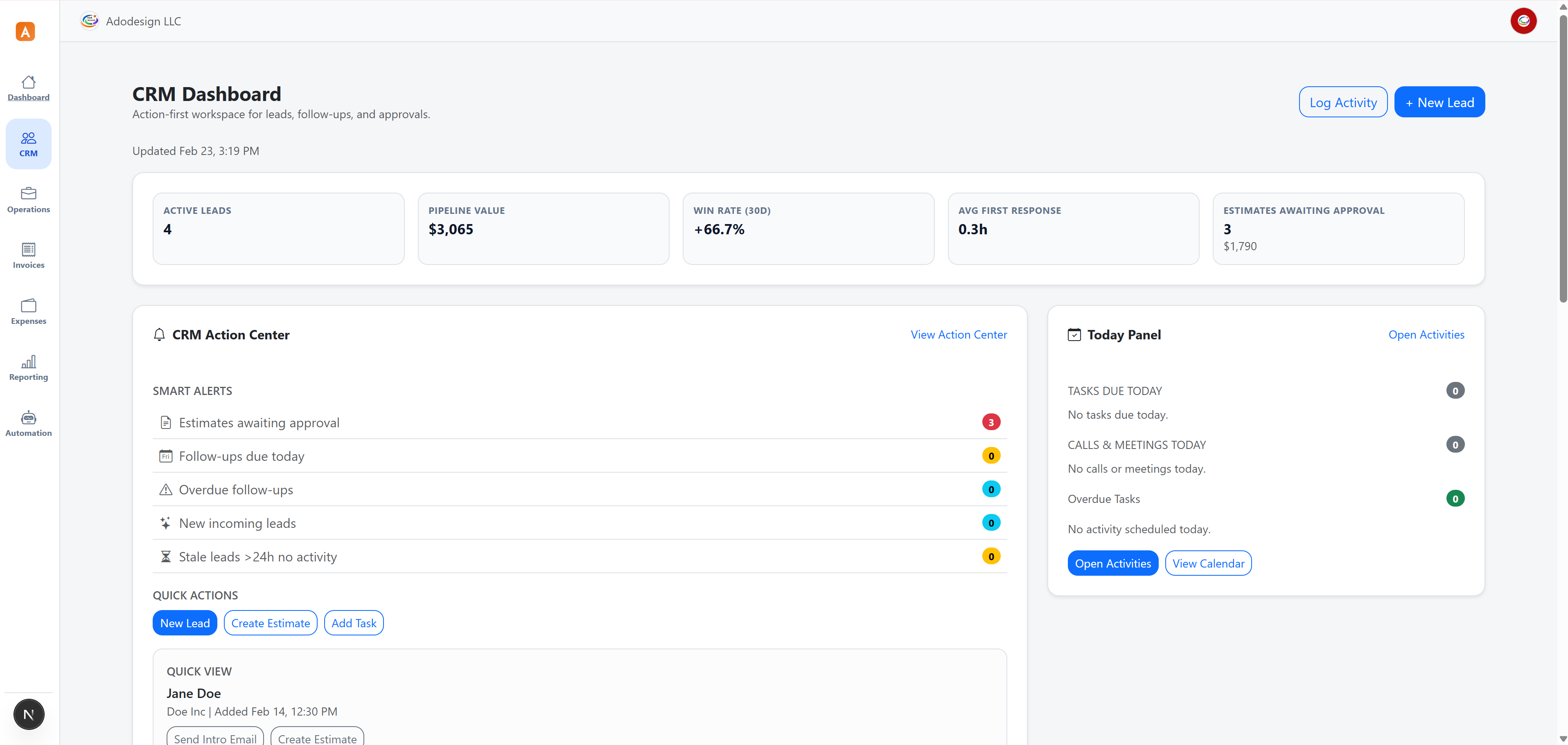 A modern workspace for CRM, invoicing, tasks, and operations — designed to keep your day moving.
